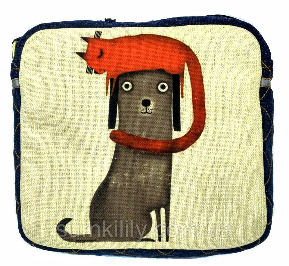 Джинсова сумочка. Містка завдяки бічній вставці завширшки 8 см. Ущільнені всі стінки сумочки. Простьобане дно для міцності та краси. Зі світловідбивними смужками з бічних стінок для безпеки в темну пору доби. Зручна у використанні завдяки двом бігункам, які рухаються назустріч один до одного. Завдяки цьому її зручно носити як на лівому, так і на правому плечі. Яскрава та неповторна підкладка зі щільної підкладкової тканини з двома накладними кишенями та з однією на блискавці. Два відділення. Друге відділення зручне для носіння планшета або інших ґаджетів.